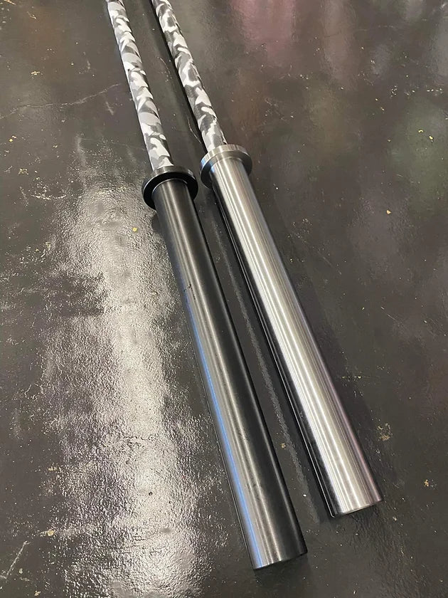 The premium Cerakote coating ensures long-lasting protection against rust, wear, and scratches, while the stainless bushings deliver reliable performance. Available with black or hardened chrome sleeves, this bar is crafted to withstand up to 2500 lbs, supported by an impressive 230,000 PSI tensile strength. Whether you're squatting, benching, or deadlifting, the Grey Camo Power Bar is engineered to handle your heaviest lifts.